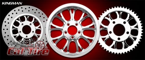 The Kingman looks amazing on just about any bike with its 9 spokes that have edge to them. Kingman boast hard lines that contrast the smooth lip rim used on all Renegade Wheels. The Kingman has personality, with the splitting of the spoke outwardly enough to be visually stunning despite having two rotors attached. Simplistic, understated lines complement any bike. Direct bolt on, matching air cleaner, rotors and pulley are available. All HHI/Renegade Custom Motorcycle Wheels are available in sizes 16" to 32".