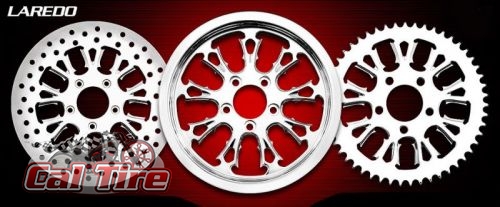 Renegade’s visionary LAREDO is a striking addition to their cutting edge wheels. This 9-spoke gothic style wheel provides an imposing visual affect to any chopper or Bagger without the “gaudy” overkill. The slender spoke pattern provides a significant weight reduction and less rotating mass, direct bolt on, matching air cleaner, rotors and pulley are available. All HHI / Renegade Custom Motorcycle Wheels are available in sizes 16" to 32".