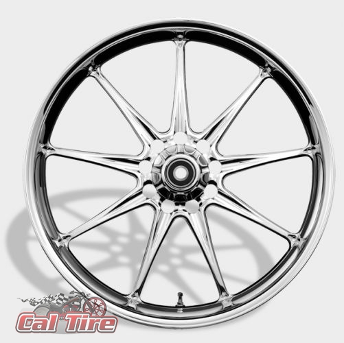 The Racine looks amazing on just about any bike with its 9 split spokes that have edge to them. The hard lines contrast the smooth lip rim used on all Renegade Wheels. Personality, visually stunning despite having two rotors attached. Simplistic, understated lines complement any bike. Direct bolt on, matching air cleaner, rotors and pulley are available. All HHI/Renegade Custom Motorcycle Wheels are available in 16" to 32".