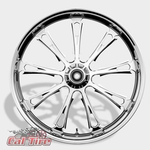 HHI / Renegade’s visionary LAREDO is a striking addition to our cutting edge wheels. This 9-spoke gothic style wheel provides an imposing visual affect to any Chopper, Bagger or Wide Tire Bike without the “gaudy” overkill. The slender, detailed spoke pattern provides a significant weight reduction and less rotating mass. Direct bolt on these wheels have matching floating brake rotors in all the right sizes, with an air cleaner, pulley or sprocket to finish your custom look with.
