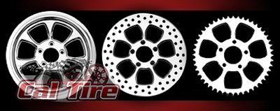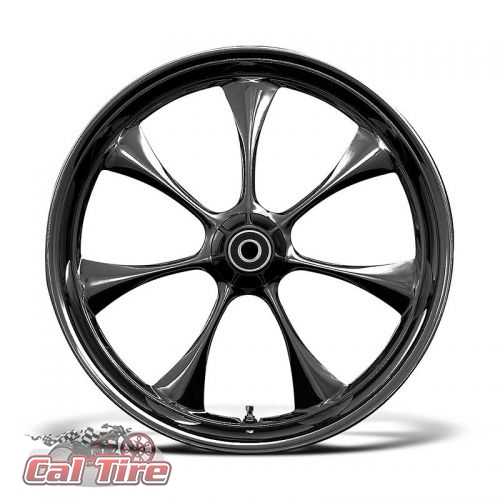 The Phoenix looks amazing on just about any style of bike with its edgey 7 spoke design. The dynamic lines contrast the smooth lip rim used on many HHI / Renegade Wheels. Make a statement with this stunning wheel in single or dual brake rotor set up. Direct bolt on with , matching air cleaner, floatiing brake rotors in 11.5,11.8, 13 and 18 inch sizes and your choice of a pulley or sprocket. Delivered in 16" to 32" sizes and now our newest Front Wide Tire sizing of 18, 21 & 23 x 5.5. Now available in 6 stunning finishes