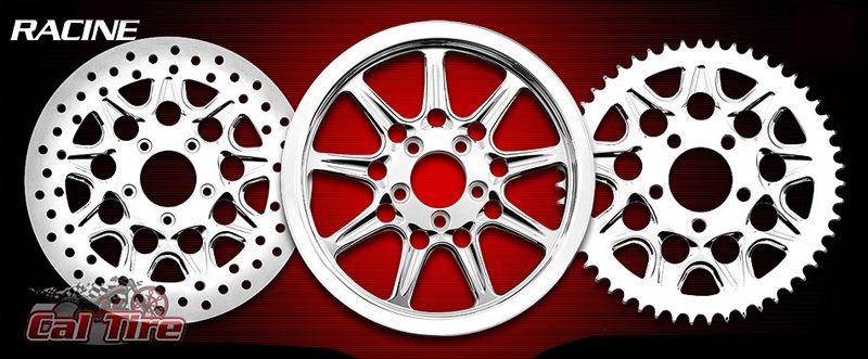 The Racine looks amazing on just about any bike with its dramatic 9 milled spoke design. Delivered in 16" to 32" sizing and now our new Front Wide Tire sizes of 18, 21 & 23 x 5.5 these wheels are the finnishing toluch on your custom build. Direct bolt on, with matching floating brake rotors in 11.5, 11.8, 13, & 18 inch sizes. Matching air cleaner, pulley or sprocket also available.