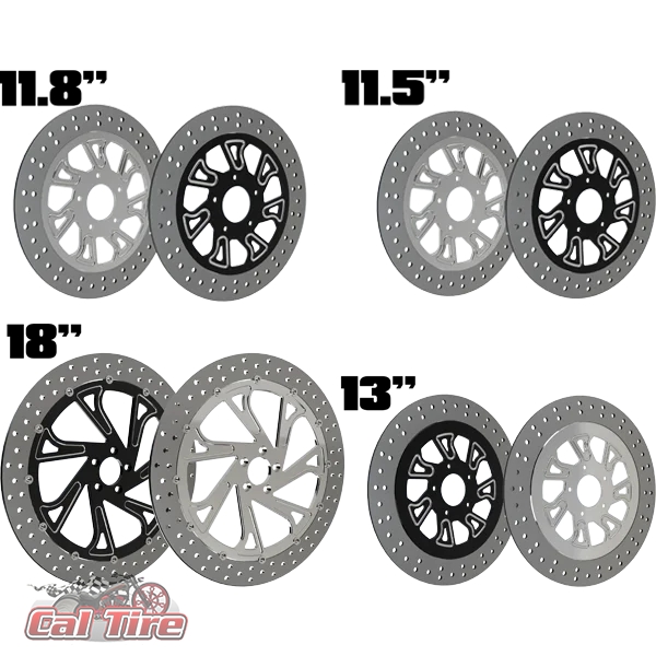 • Rotor Options: 11.5″, 11.8″, 13″, floating, solid, 13” rotor kit, and 18” rotor kit.